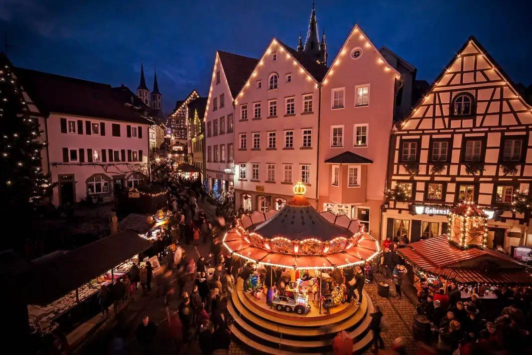 The Old German Christmas Market in Bad Wimpfen in Baden-Württemberg is also one of the oldest markets in Germany. The first market took place as early as 1487, when it was still called Katharinenmarkt. Today, it takes place from Friday to Sunday during the first three weekends of Advent.